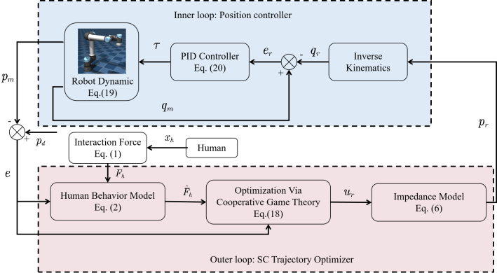 论文二:研究成果《PGSC: A Shared Control Framework for Trajectory Adaptation in pHRI via Human Motion Prediction and Cooperative Game Theory》面向物理人机交互中的轨迹自适应这类复杂应用场景,提出了一种基于人体运动预测与合作博弈论的人机共享控制(PGSC)框架(如图2),该方法解决了未知障碍物规避过程中人机冲突的核心问题,突破了传统共享控制方法仅依赖当前人体指令、预测模型易发生灾难性遗忘的技术局限,兼顾了轨迹跟踪的精度与人机协作的主动性,提升了机器人在非结构化环境下的自适应作业能力,为物理人机交互中轨迹自适应控制的工程实现突破了关键理论与技术瓶颈。