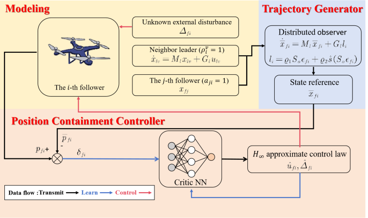 论文一:研究成果《Optimal Robust Containment Control for Human-Quadrotor Formation via Critic Neural Network Learning with Relaxed PE Conditions》面向无人机集群协同作业等复杂应用场景,提出了一种基于评价神经网络的人在环最优鲁棒合围控制一体化框架(如图1),该方法解决了外部扰动下有人类意图干预的集群编队围合控制问题,突破了传统方法对 PE 条件的严苛要求,兼顾了编队控制的鲁棒性与最优性,提升人机协同下无人集群编队协同的环境适应能力与机动性能,为多智能体协同控制的工程落地突破了关键理论瓶颈。